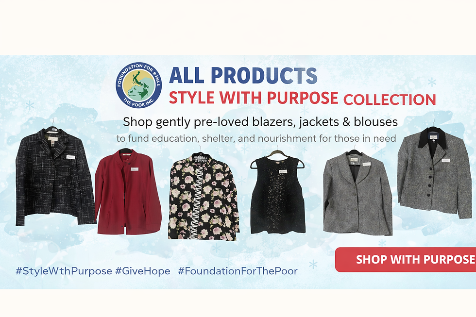 Discover gently pre-loved blazers, jackets, and blouses donated in love to support Foundation for the Poor Inc. Every piece you choose helps provide education, shelter, and nourishment to communities in need.